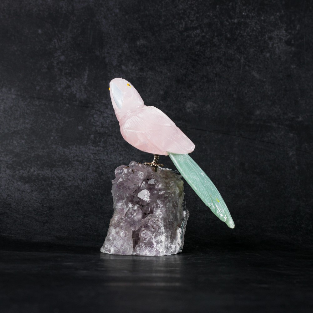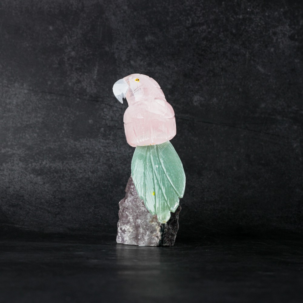 ما يجعل ببغاء الروز كوارتز هدية مرموقة هو طابعه الفريد، كل طائر نحت يدويا. يتخذ نحت الطائر فترة تصل الى سبعة أيام. لكي يحاكي الطبيعة ويكون جماله خلابا. يقال بان الروز كوارتز يحفز الحب ويساعد على تحسين الغضب وعدم التقبل.